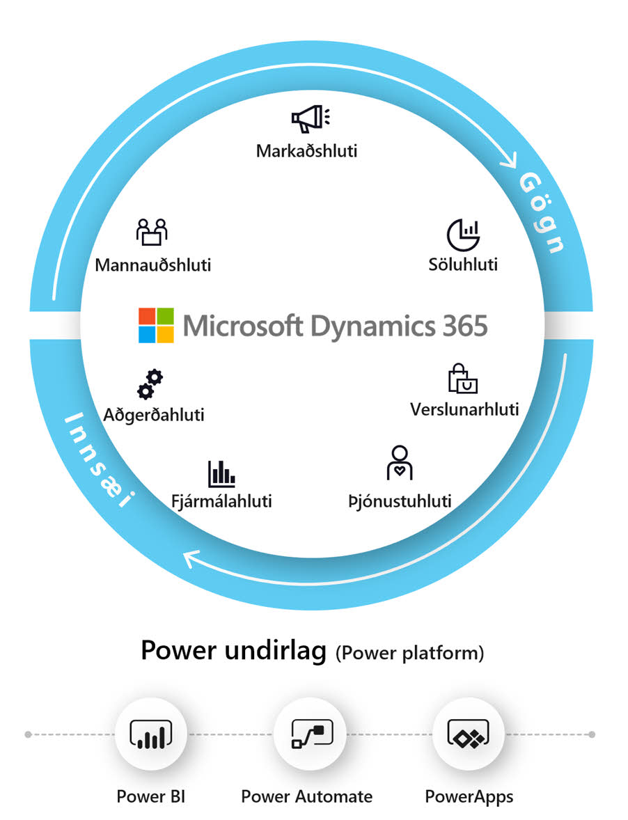 Dynamics 365 er skýjalausn frá Microsoft sem sameinar CRM og ERP, tengir gögn við ferla og nýtir gervigreind til að flýta ákvarðanatöku. Lausnin hjálpar þínu fyrirtæki að vera skrefinu á undan í samskiptum, sölustýringu og rekstri – og við aðstoðum við innleiðingu sem skilar árangri.